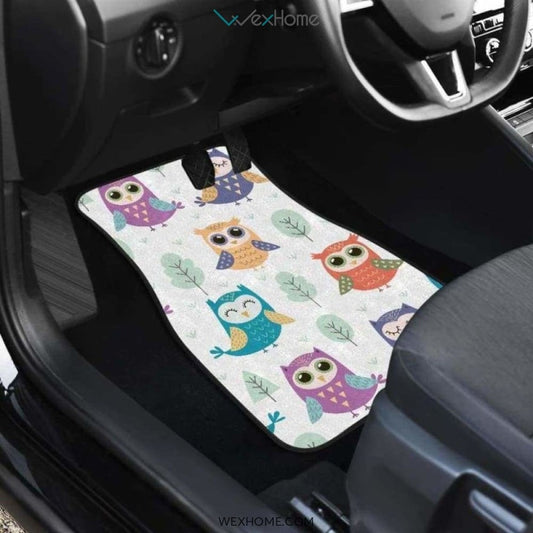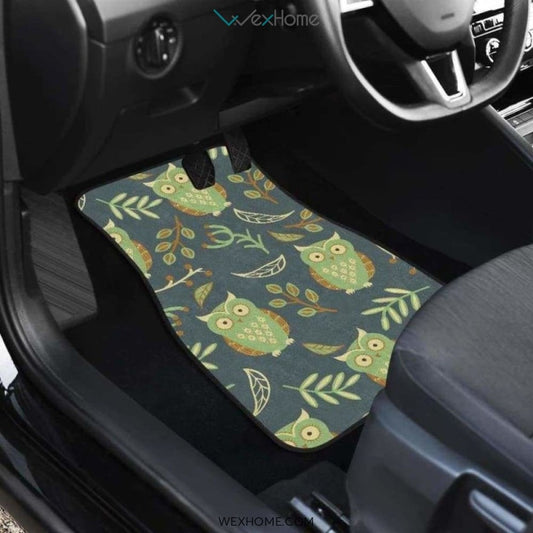 Cute Owls Leaves Pattern Front And Back Car Mats