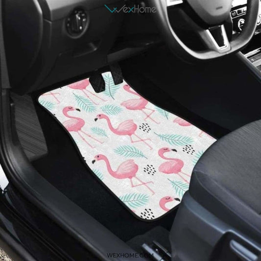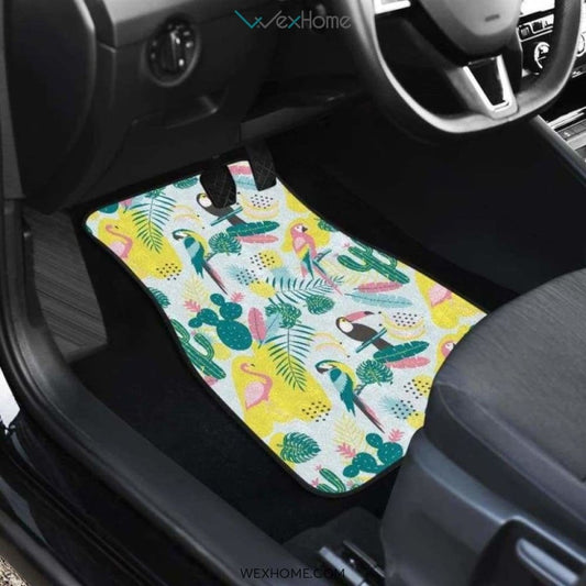 Cute Parrot Toucan Flamingo Cactus Exotic Leaves Pattern Front And Back Car Mats