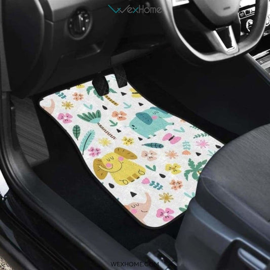 Cute Elephants Palm Tree Flower Butterfly Pattern Front And Back Car Mats