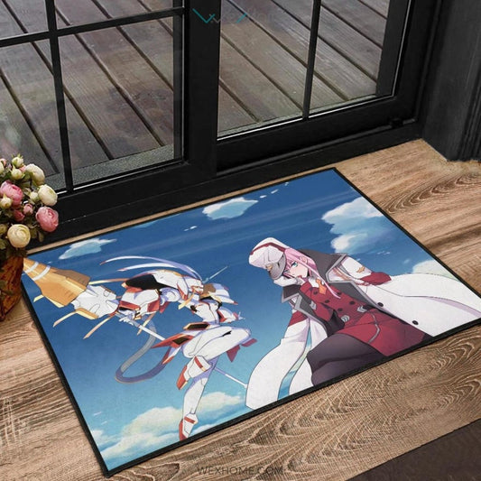 Darling In The Franxx Anime Captain Zero Two With Darling Strelitzia Ready For Fight Door Mat Hom Decor