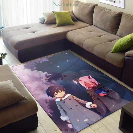 Darling In The Franxx Anime Cute Little Hiro And Red Zero Two Holding Hands Cherry Blossom Area Rug Home Decor