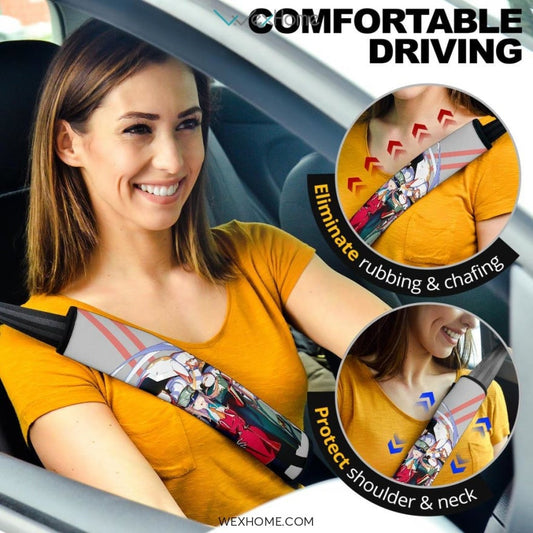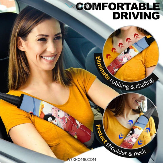 Darling In The Franxx Anime Seat Belt Covers | Strelizia Darling With Zero Two Cute Smiling Belt Covers