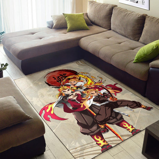 Demon Slayer Anime Rengoku Fire Breath Power Red Sun Area Rug Home Decor