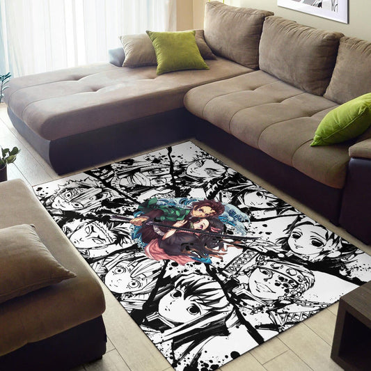 Demon Slayer Anime Tanjiro Protect Nezuko Vs Villains Black White Area Rug Home Decor