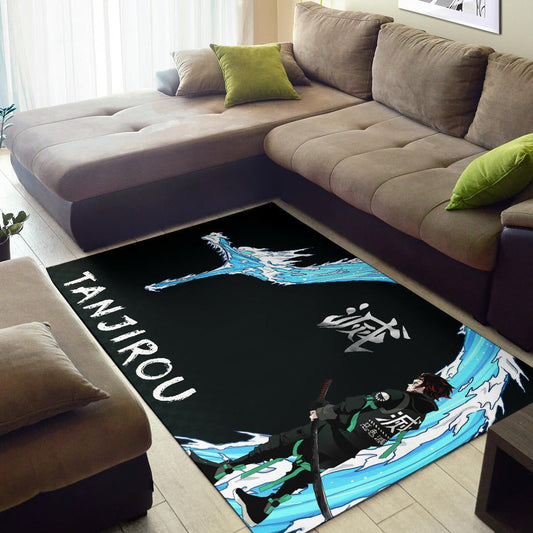 Demon Slayer Anime Tanjiro Kanji Water Dragon Power Power Black Area Rug Home Decor