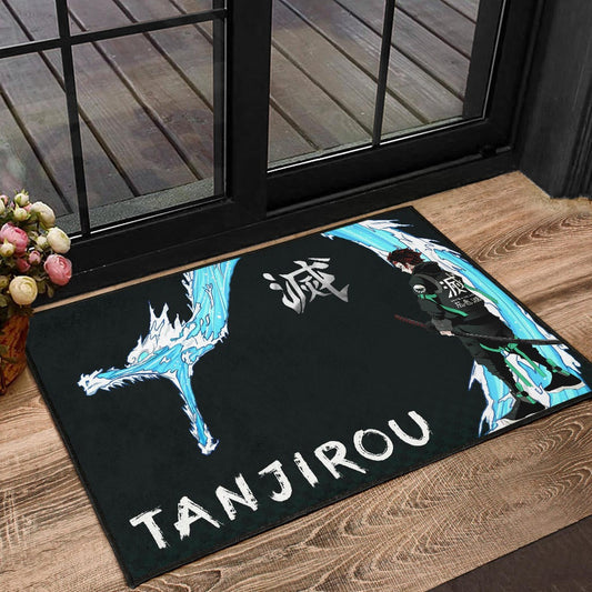 Demon Slayer Anime Tanjiro Kanji Water Dragon Power Power Black Door Mat Home Decor