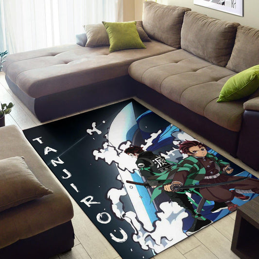 Demon Slayer Anime Tanjiro Fighting Moments Water Power Area Rug Home Decor