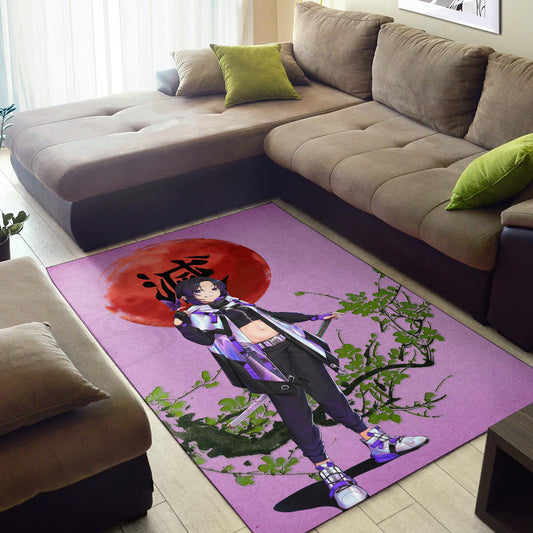 Demon Slayer Anime Shinobu Wearing Modern Clothes Purple Theme Area Rug Home Decor