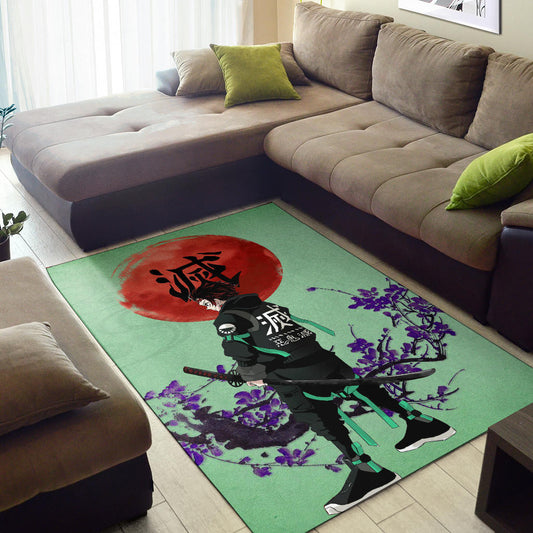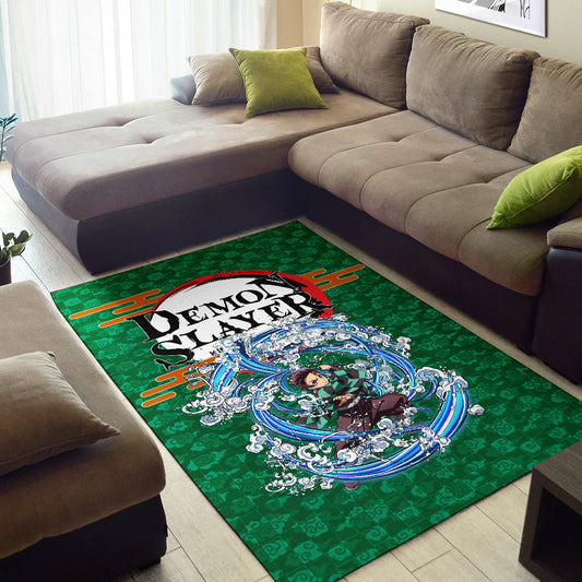 Demon Slayer Anime Tanjiro Water Breath Power Green Background Area Rug Home Decor