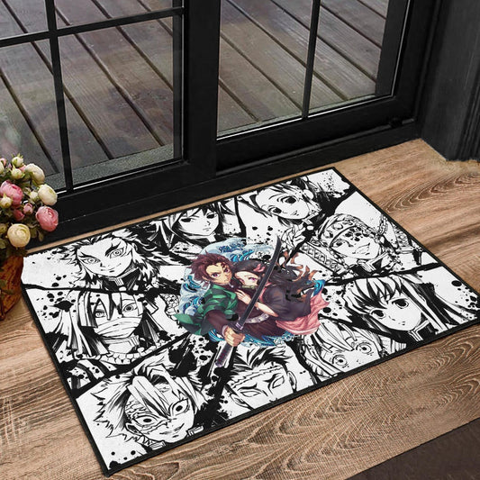 Demon Slayer Anime Tanjiro Protect Nezuko Vs Villains Black White Door Mat Home Decor