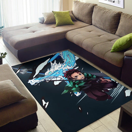 Demon Slayer Anime Tanjiro Water Dragon Power Sword Fighting Area Rug Home Decor