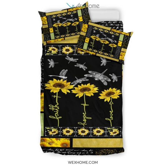 Dragonfly Sunflower Quilt Bedding - Duvet Cover And Pillowcase Set - Unique Design Amazing Gift