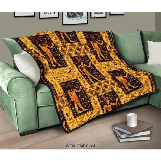 Egypt Hieroglyphics Pattern Print Design 01 Premium Quilt