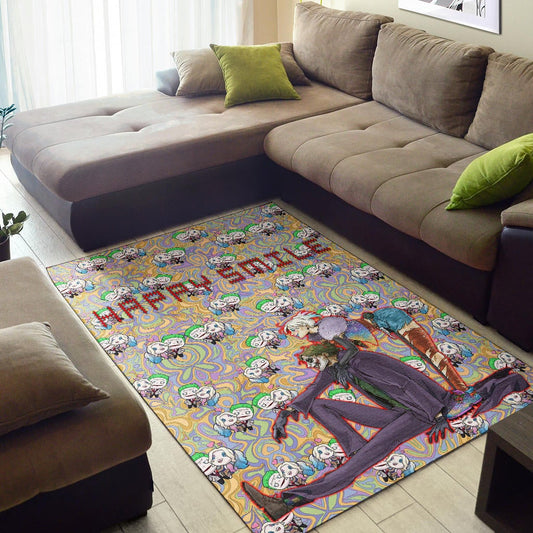 Horror Movie Joker And Harley Quinn Happy Smile Chibi Patterns Area Rug Home Decor