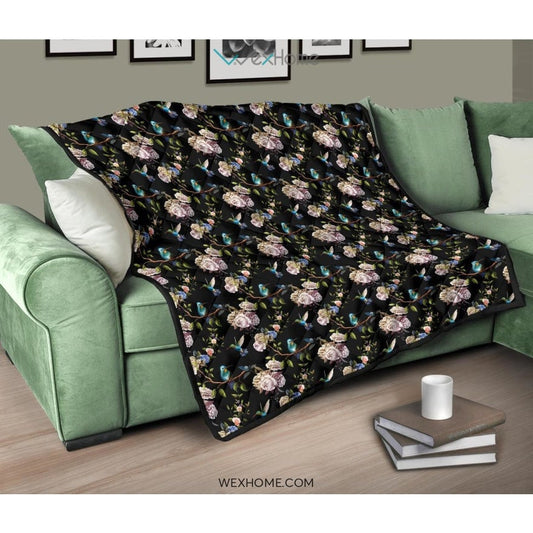 Hummingbird Pattern Print Design 02 Premium Quilt