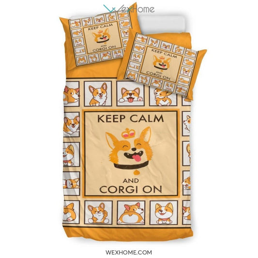 Keep Calm And Corgi On Bedding - Duvet Cover And Pillowcase Set - Unique Design Amazing Gift