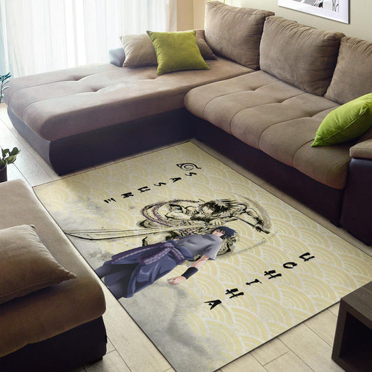 Naruto Anime Sasuke Uchiha Using Sword Black Painting Artwork Area Rug Home Decor