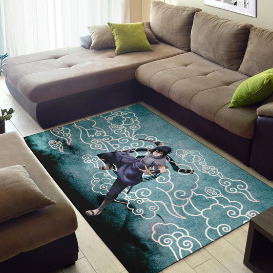 Naruto Anime Sasuke Uchiha Cloud Pattern Blue Theme Area Rug Home Decor