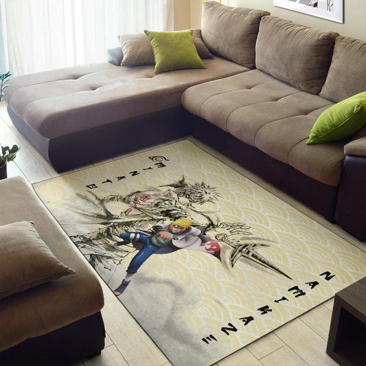 Naruto Anime Minato Namikaze Using Kunai Black Painting Artwork Area Rug Home Decor