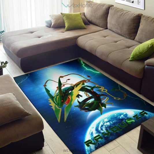 Pokemon Anime Pokemon Rayquaza Ultra Universe Blue Area Rug Home Decor