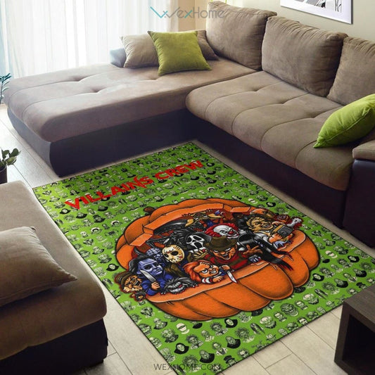 Horror Movie Villains Crew In Pumpkin Green Patterns Area Rug Home Decor