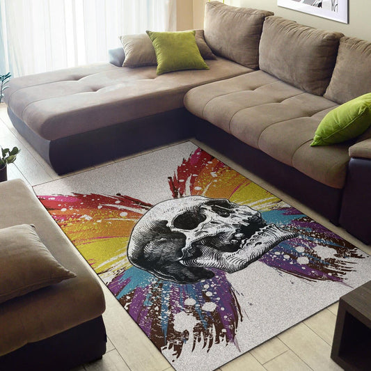 Skull Area Rug - Sickness Skull With Colorful Beautiful Butterfly Wings Rugs Home Decor
