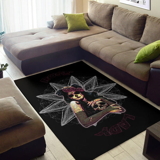 Skull Area Rug - Pretty Death Rose Lady Hug Skull Head Rugs Home Decor