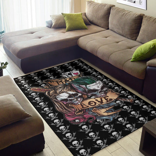 Valentine Area Rug - Mad Love Harley Quinn And Joker Skull Patterns Rugs Home Decor