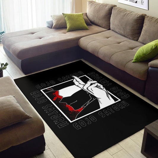 Jujutsu Kaisen Anime Area Rug Satoru Gojo Face Shadow Hand Sign Black White Rugs Home Decor