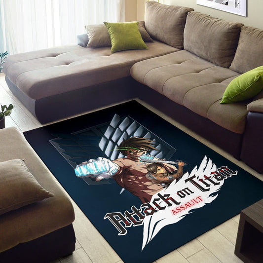 Attack On Titan Anime Area Rug - Eren Titan Punch And Eren Human Metal Wings Of Freedom Rugs Home Decor