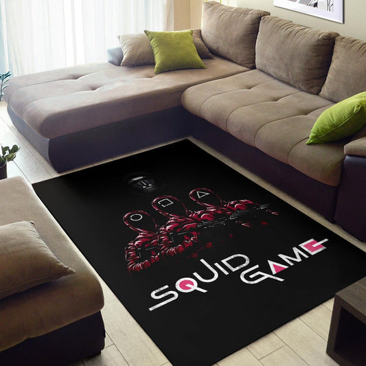 Squid Game Movie Area Rug - Squid Workers Round Square Triangle Face Black Metal Mask Boss Rugs Home Decor