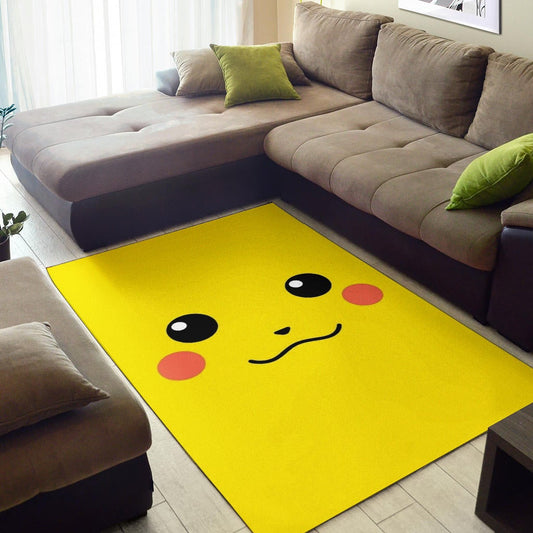 Pokemon Anime Area Rug - Cute Minimalist Pikachu Yellow Face Rugs Home Decor