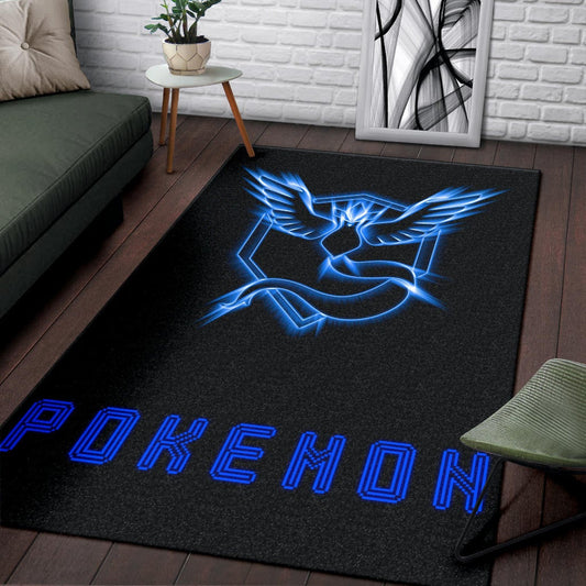 Pokemon Anime Area Rug Team Mystic Symbol Neon Blue Articuno Pokemon Go Rugs Home Decor