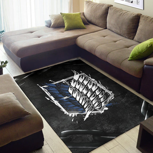 Attack On Titan Anime Area Rug - Wings Of Free Symbol Locked In Black Chains Rugs Home Decor