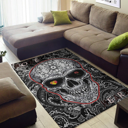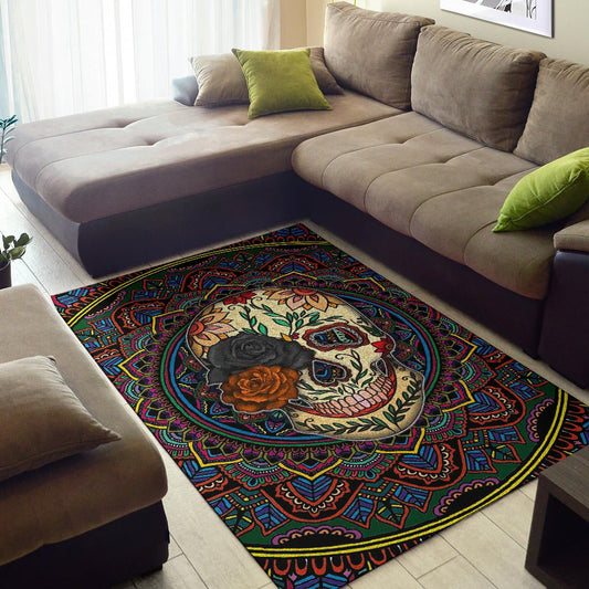Valentine Area Rug - Colored Mandala Skull Background Roses From Eye Rugs Home Decor