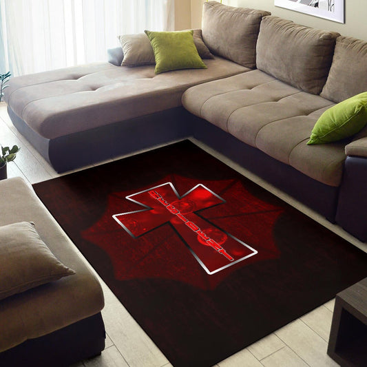 Resident Evil Game Area Rug - Red Umbrella Corporation With Blood In Cross Rugs Home Decor