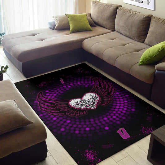Valentine Area Rug - I Love You Purple Skull Heart With Wings Rugs Home Decor