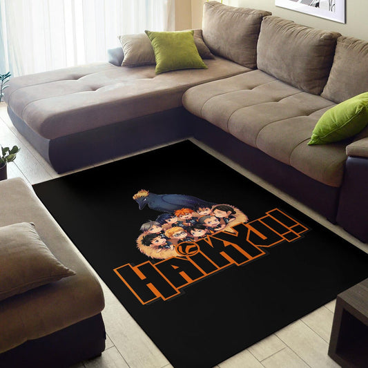 Haikyuu Anime Area Rug - Haikyuu Chibi Volleyball Team Members In Raven Nest Rugs Home Decor