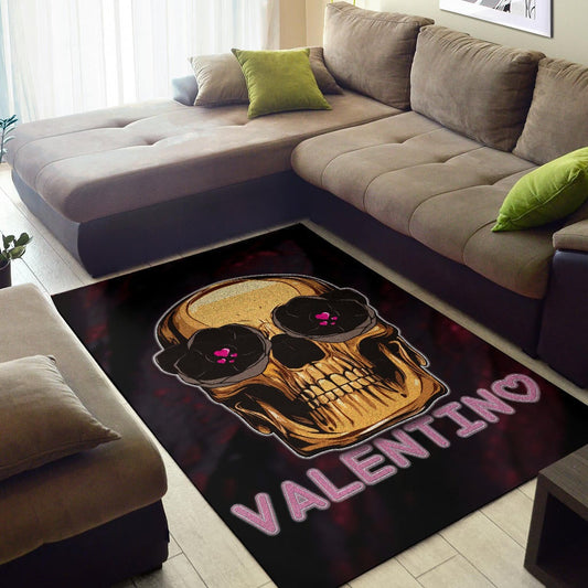 Skull Area Rug - Golden Skull Hearts Eyes Happy Valentino Rugs Home Decor