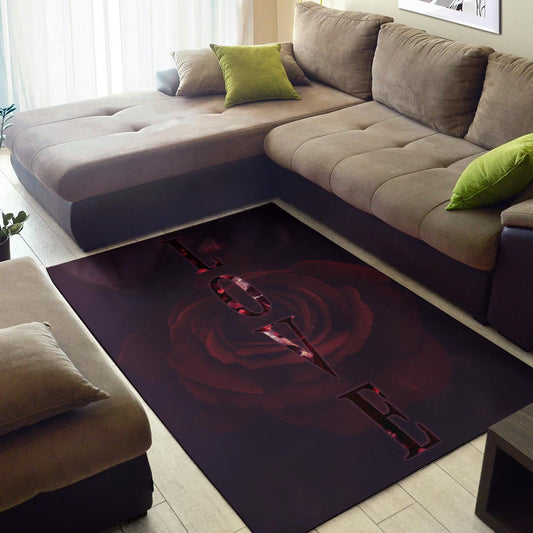 Love Area Rug - LOVE Text Rose Flower Black Background Rugs Home Decor