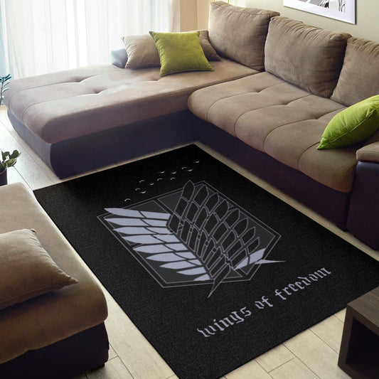 Attack On Titan Anime Area Rug - Wings Of Freedom Black And White Galaxy Rugs Home Decor