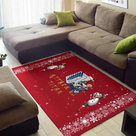 Attack On Titan Anime Area Rug - Merry Christmas AOT Armin Cosplay Snowman Red Rugs Home Decor