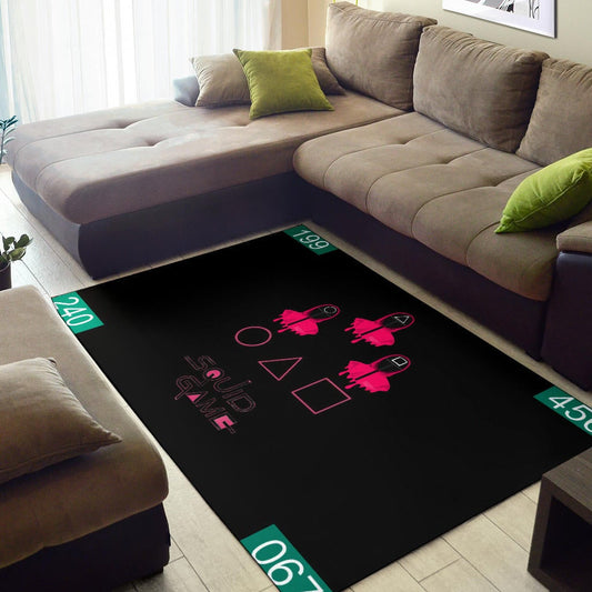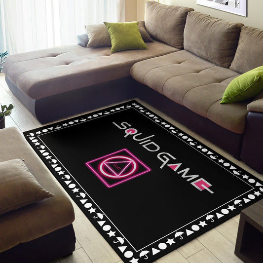 Squid Game Movie Area Rug Neon Squid Symbols Round Square Triangle Umbrella Patterns Rugs Home Decor