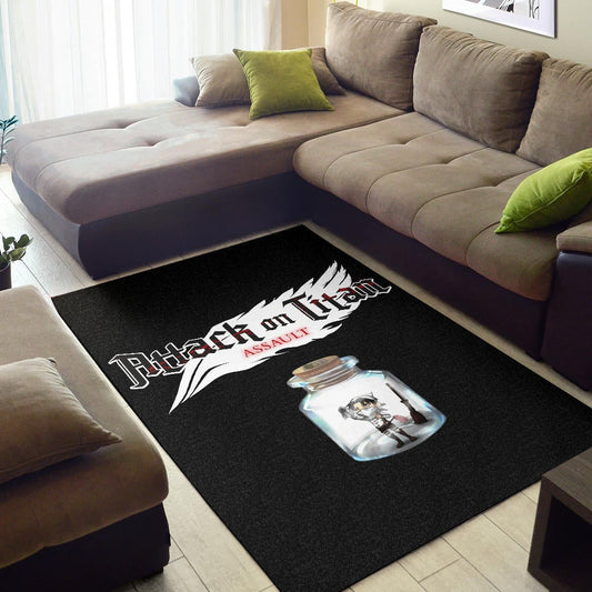 Attack On Titan Anime Area Rug - Funny Chibi Cleaning Levi In Jar Bottle Trap Rugs Home Decor