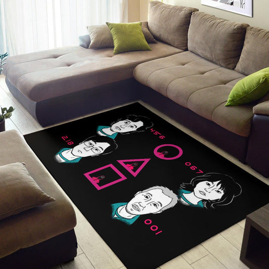Squid Game Movie Area Rug - Round Square Triangle Squid Workers Main Players Artwork Rugs Home Decor