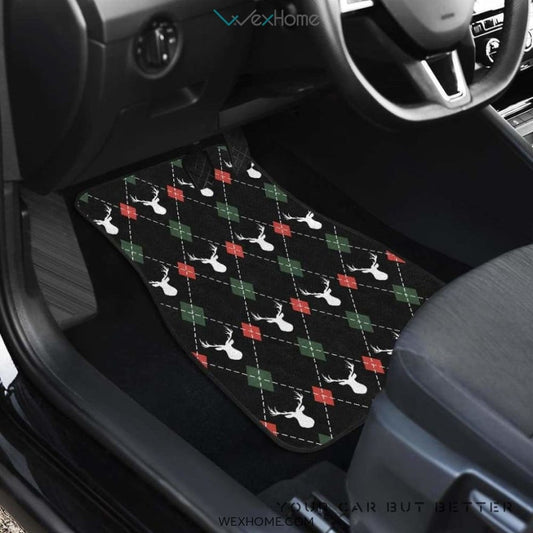 Deer Christmas New Year Pattern Argyle Front And Back Car Mats