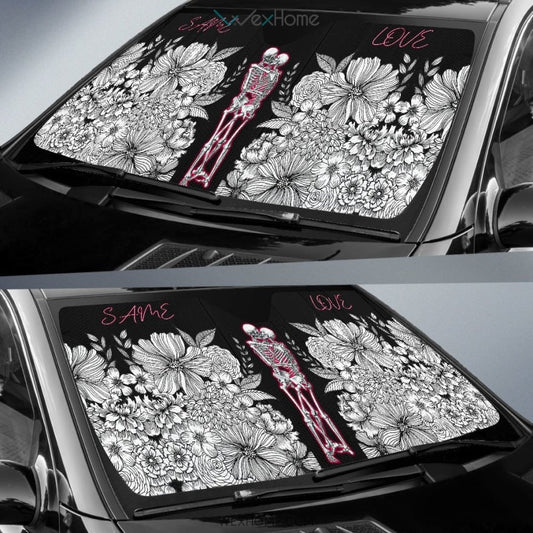Same Love Skeleton Hug Flower Garden Black White Sun Shade