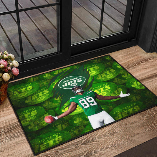 New York American Football Jets Football Player 89 Celebrating Score Holding Ball Door Mat Home Decor