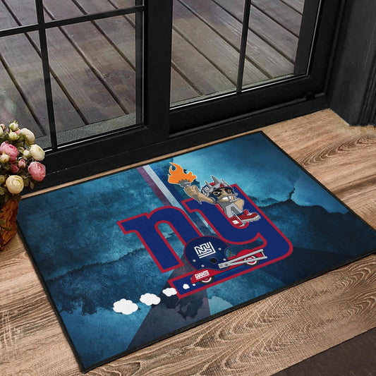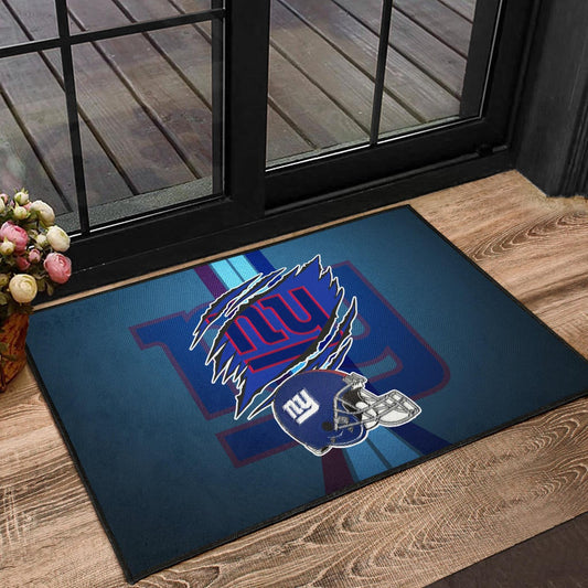 New York Giants American Football Team Door Mat Claw Scratches Reveal NY Text Blue Helmet Door Mat Home Decor