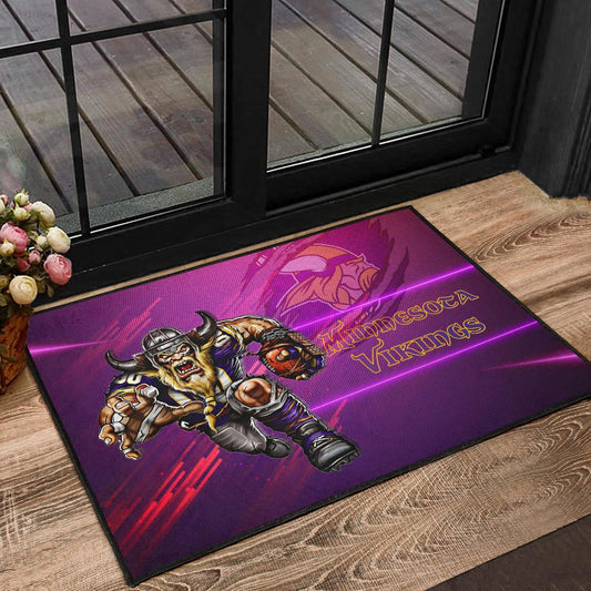 Minnesota Vikings American Football Team Door Mat Giant Viking Holding Rugby Running Pink Purple Door Mat Home Decor